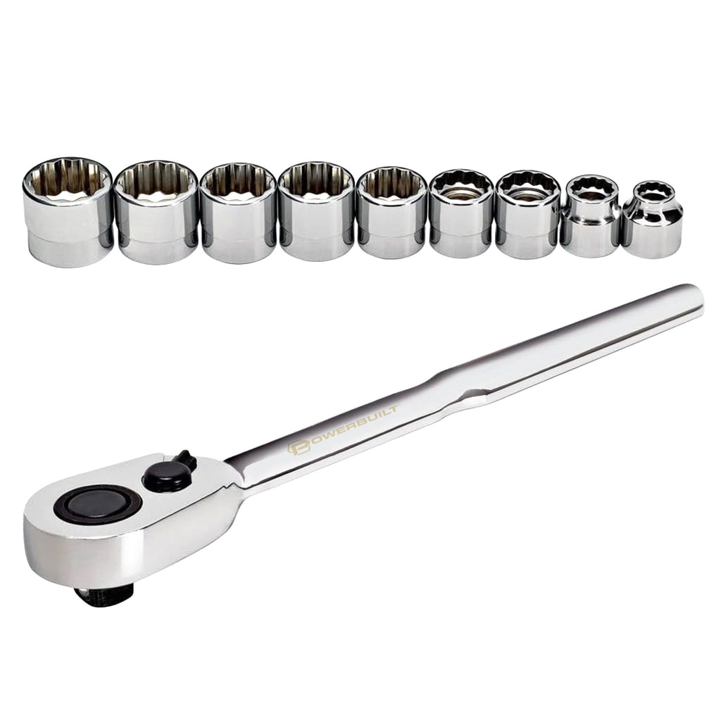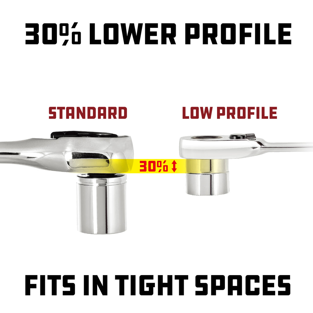 Low Profile Sockets Are Designed To Fit In Tight Spaces That Standard Socket And Ratchet Combinations Cannot Fit Into. They Are Perfect For Working In Tight Spaces And Ideal For Many Automotive Applications. These Low Profile Sockets Are On The Average 33% Shorter Than Standard Shallow Sockets And Made From Mirror Polished Chrome Vanadium Steel. Low Profile Sockets Will Work With Both Powerbuilt & #174; Low Profile Ratchet Which Is Included In This Set, As Well As A Standard 3/8" Drive Ratchets.